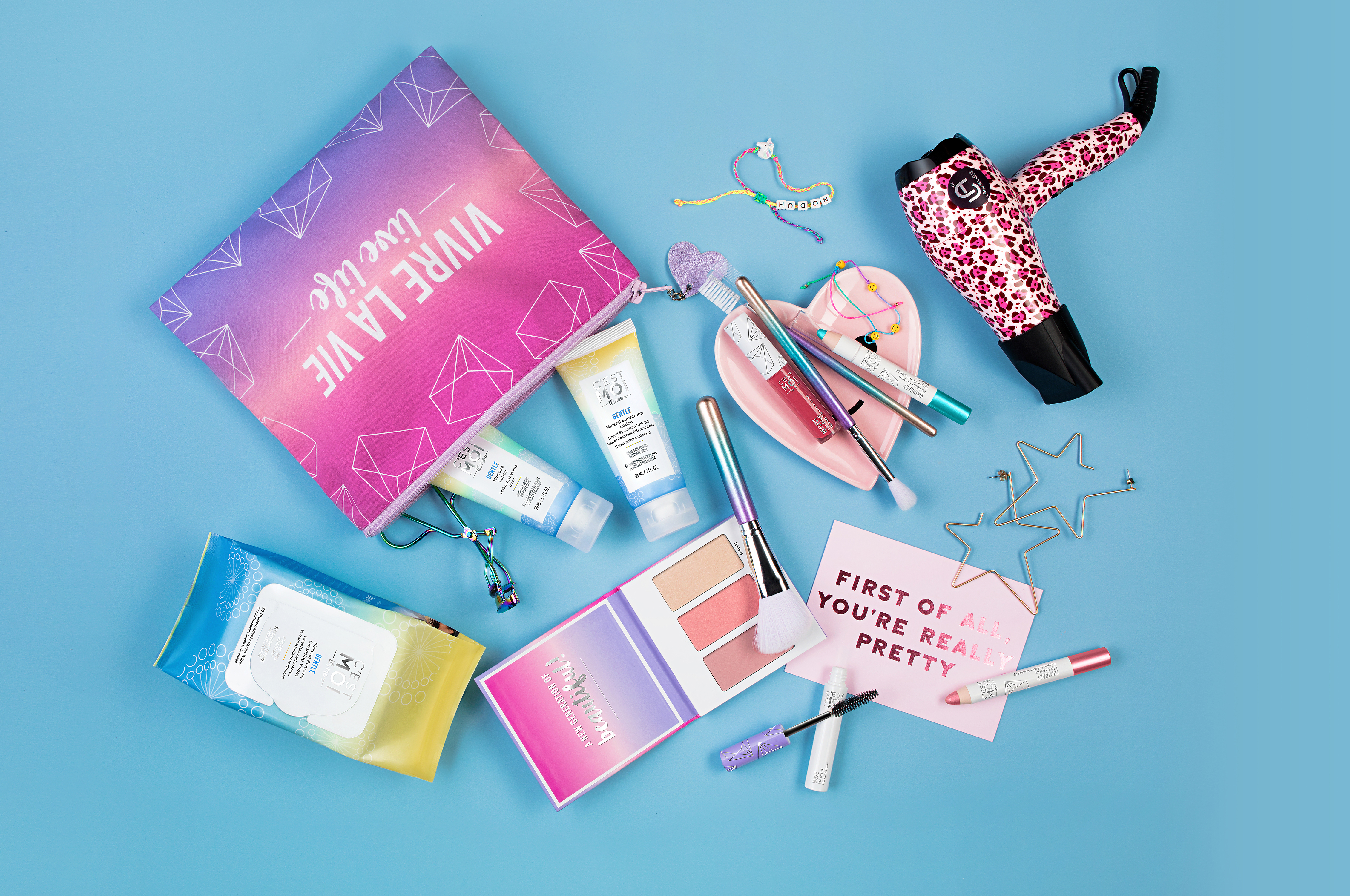 When I heard about C’est Moi, a new clean beauty brand thoughtfully formulated for tweens and teens, I thought SCORE SCORE SCORE, this will not only keep Aria happy for a good while but it’ll also score me some major mommy points.