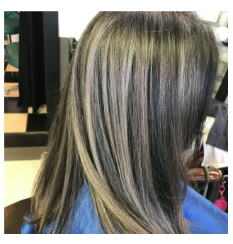 Grace Ilasco, co-owner of the Color Lounge in Burbank, California, offers a “Fifty Shades of Gray” transformation from colored brown, red or blond tresses to an all over adjustment to match or blend seamlessly with the client’s grey, white or silver roots.