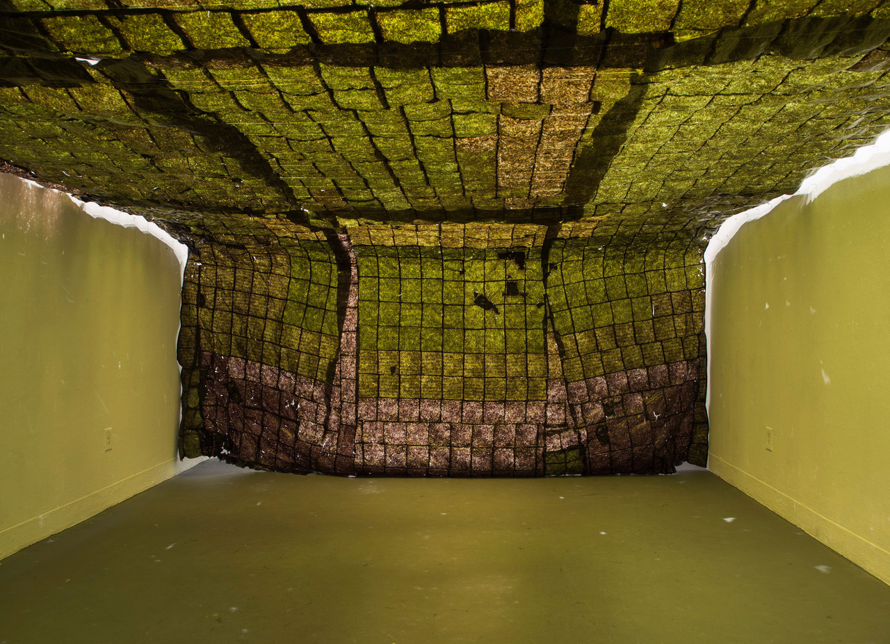 The opening reception of Juried Exhibition 2018 on Sunday featured a special performance by Rebecca Bruno, the founder of homeLA. Other notable works include Hannah Varamini’s Colony Reprise, a dramatic site-specific seaweed installation and Gal Amiram’s Doubles, a monumental 24-foot inkjet print which critiques the manipulation of images through digital technology. Also not to be missed are Lena Daly’s sculptural installation ReCharge Battery, employing UV light and ultrasound, Anikó Kuikka’s video installation, White Sugar, which offers a compelling fairytale for the modern age, and Adee Roberson’s vibrant paintings that speak to African diasporic memory.