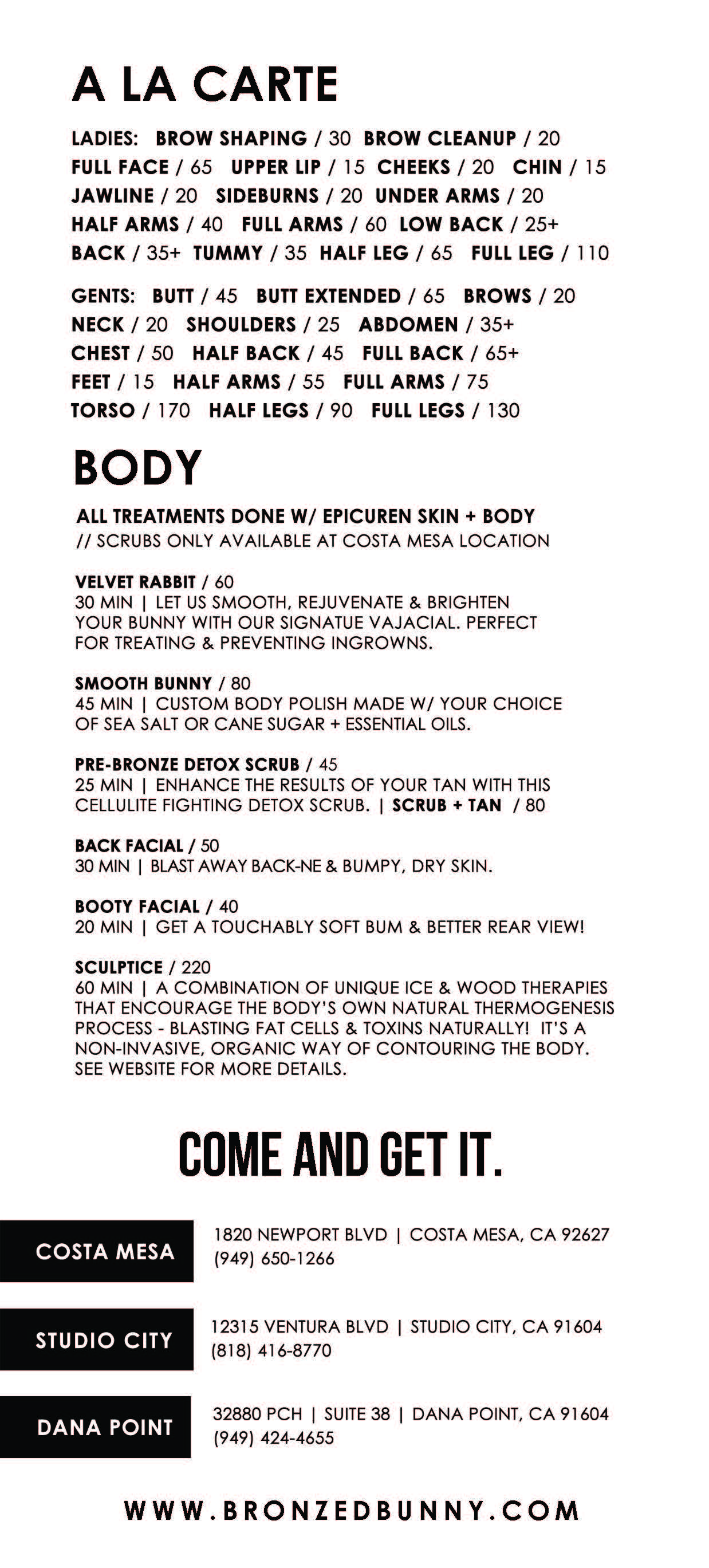 Prepare for your vajacial with Bronzed Bunny’s other signature treatment, Sugaring is the safest and most gentle form of hair removal; that is even safe for certain skin conditions. They use organic sugar paste made of just water, sugar and lemon. The sugar ball is applied in the opposite direction of hair growth, while the sugar seeps into the hair follicle and wraps around the root, the paste is flicked off in the natural hair growth direction eliminating hair breakage and irritation. The sugar itself is a natural humectant which draws moisture into the skin, while naturally exfoliating dead and dry skin.